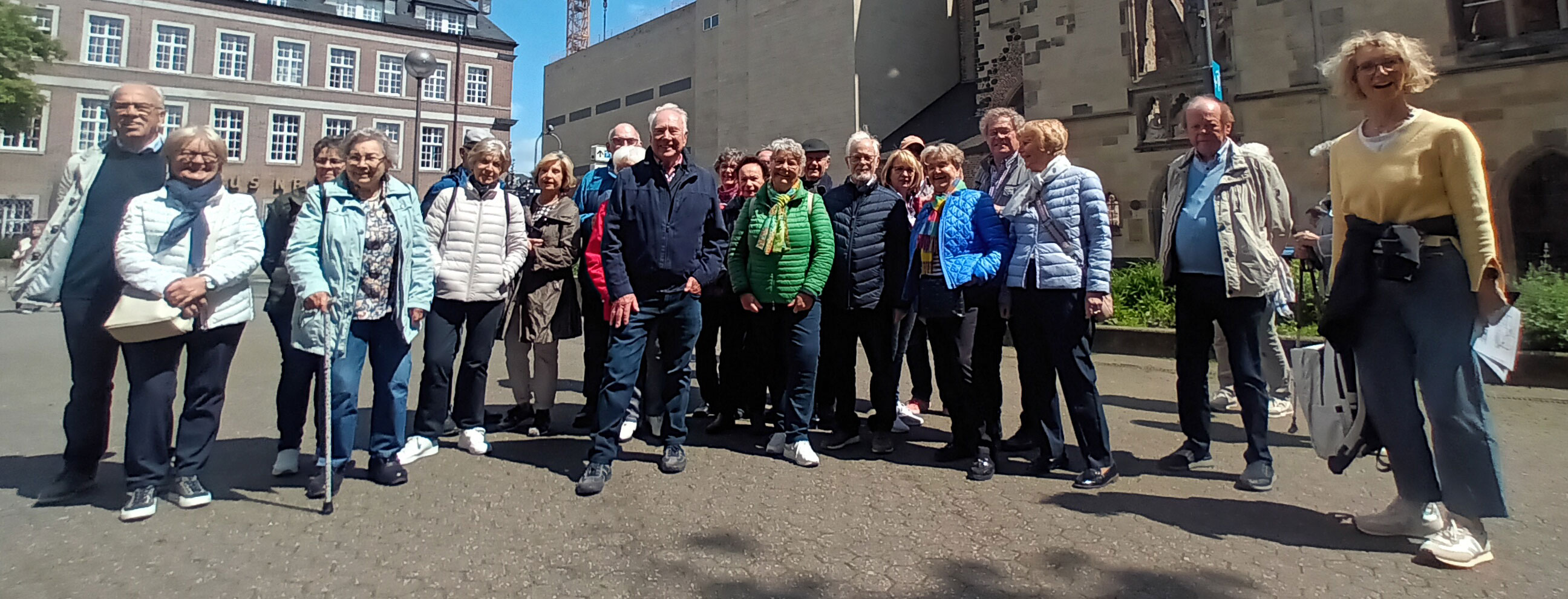 Am 17.05.2023 unternahmen Mitglieder des Vereins für Geschichte und Heimatkunde Bedburg e.V. die angekündigte Fahrt nach Köln zur Besichtigung der historischen Festhalle, dem Kölner Gürzenich und der Ruine St. Alban. Insgesamt 28 Mitglieder des Geschichtsvereins wurden von Frau Dr. Martina Langel fachkundig über das prachtvolle Treppenhaus und durch die Festsäle mit spannenden Geschichten durch die Zeitreise geführt.