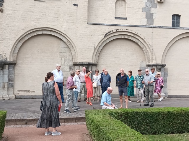 Am 9. August 2024 besuchte der Geschichtsverein Bedburg mit 32 Mitgliedern die im 11. Jahrhundert belegte Gründungslegende der ezzonischen Kirchen- und Klosterstiftung in Brauweiler. Unter der fachkundigen Führung von Frau Margret Zander-Maaß wurden uns bei einem Rundgang durch die Klosterkirche St. Nikolaus, die Abtei mit Kapitelsaal und Kreuzgang, den gepflegten Hofgarten und die Parkanlagen sowie den Königssaal die geschichtlichen Hintergründe erläutert.