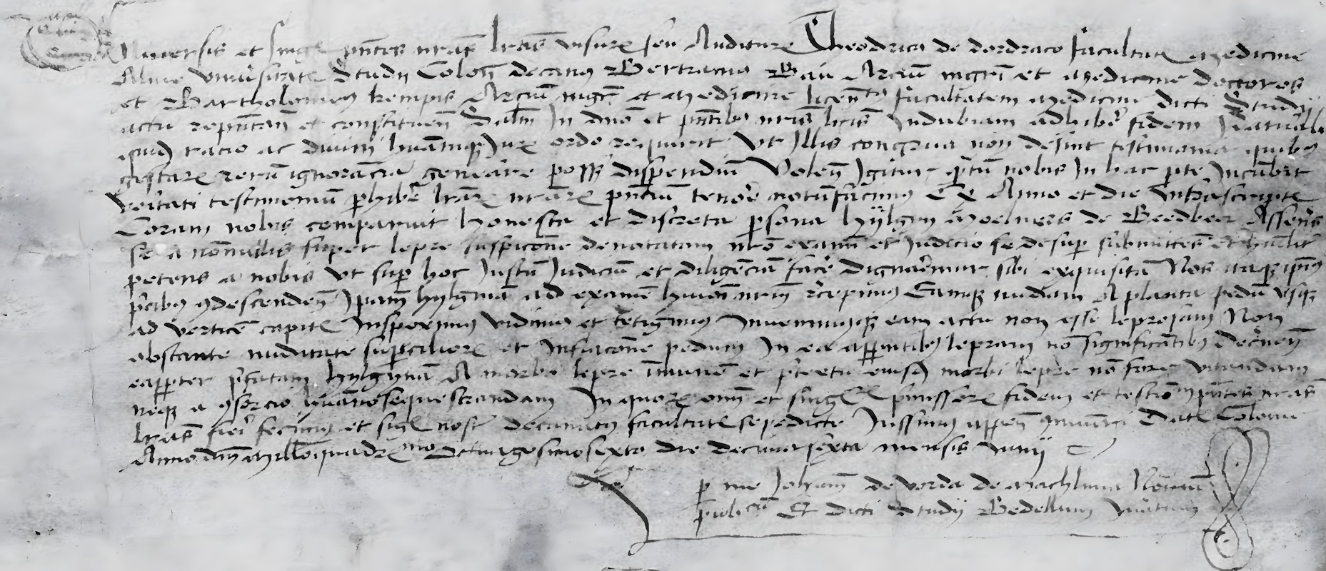 Zum Abschluss wurden ausgewählte Urkunden mit Siegeln der Stadt Köln und der Bischöfe gezeigt. Höhepunkt war eine mittelalterliche Urkunde einer Bedburger Bürgerin über eine mögliche Lepraerkrankung. Es handelte sich um einen ärztlichen Untersuchungsbericht der Medizinischen Fakultät der Universität Köln aus dem Jahr 1486. Der, Hijlgyn Moelners de Beedbeer (Bedburg) wird bescheinigt, dass sie nicht aussätzig ist.