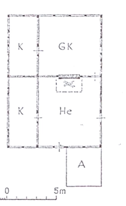 Möglicherweise wurde das Gebäude ursprünglich landwirtschaftlich genutzt, mit verschiedenen angebauten Stallungen, wie es Heinz-Gerd Schmitz in einem Artikel beschrieben hat. Das lässt sich nicht mehr nachweisen, wäre aber in einer ländlichen Gegend naheliegend. Er schreibt weiter, dass das Gebäude als Gasthaus, Metzgerei und Blumenladen genutzt wurde. Die Raumaufteilung nach einer Rekonstruktionszeichnung ist im Innern einfach, zur Straße hin zwei große Räume, zum Garten hin zwei schmale Kammern. In einem der größeren Räume befand sich eine Feuerstelle mit Kamin. Die Lage der Fenster sind wahrscheinlich mehrfach verändert worden und entsprechen heute nicht mehr dem ursprünglichen Plan. Man kann sich gut vorstellen, dass sie anfangs nicht verglast, sondern mit Leinen, Fellen oder Holz verschlossen waren, da Glas sehr teuer war.