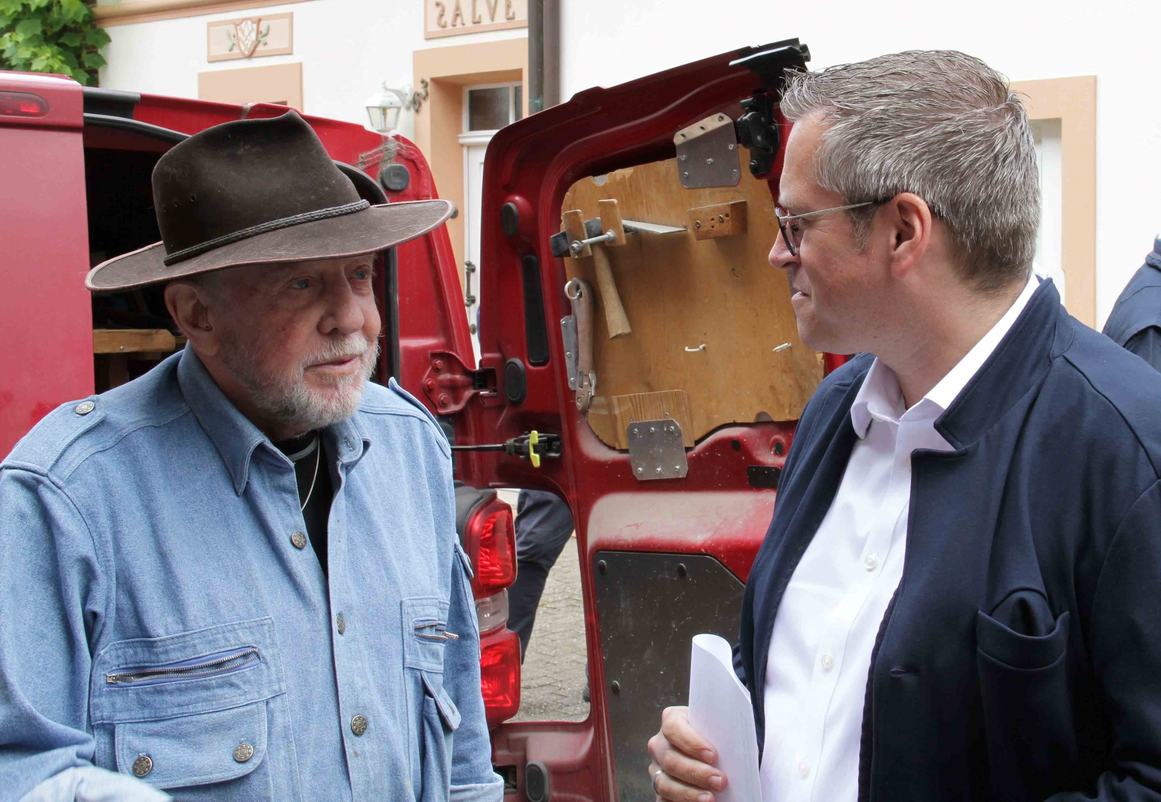 Gunter Demnig und Bürgermeister Sascha Solbach