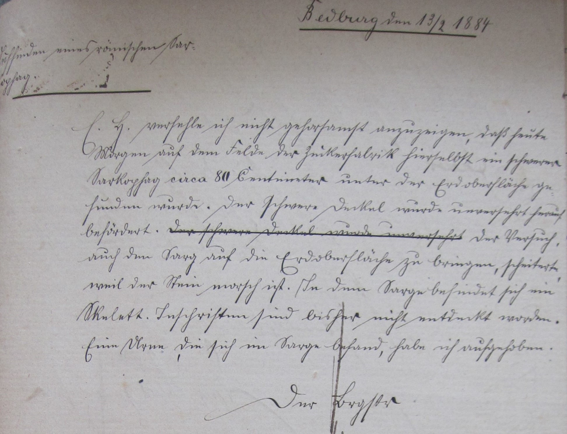 Eine Notiz, die am 13.02.1884 erstellt wurde, sorgte für viel Aufmerksamkeit. Sie beginnt mit
