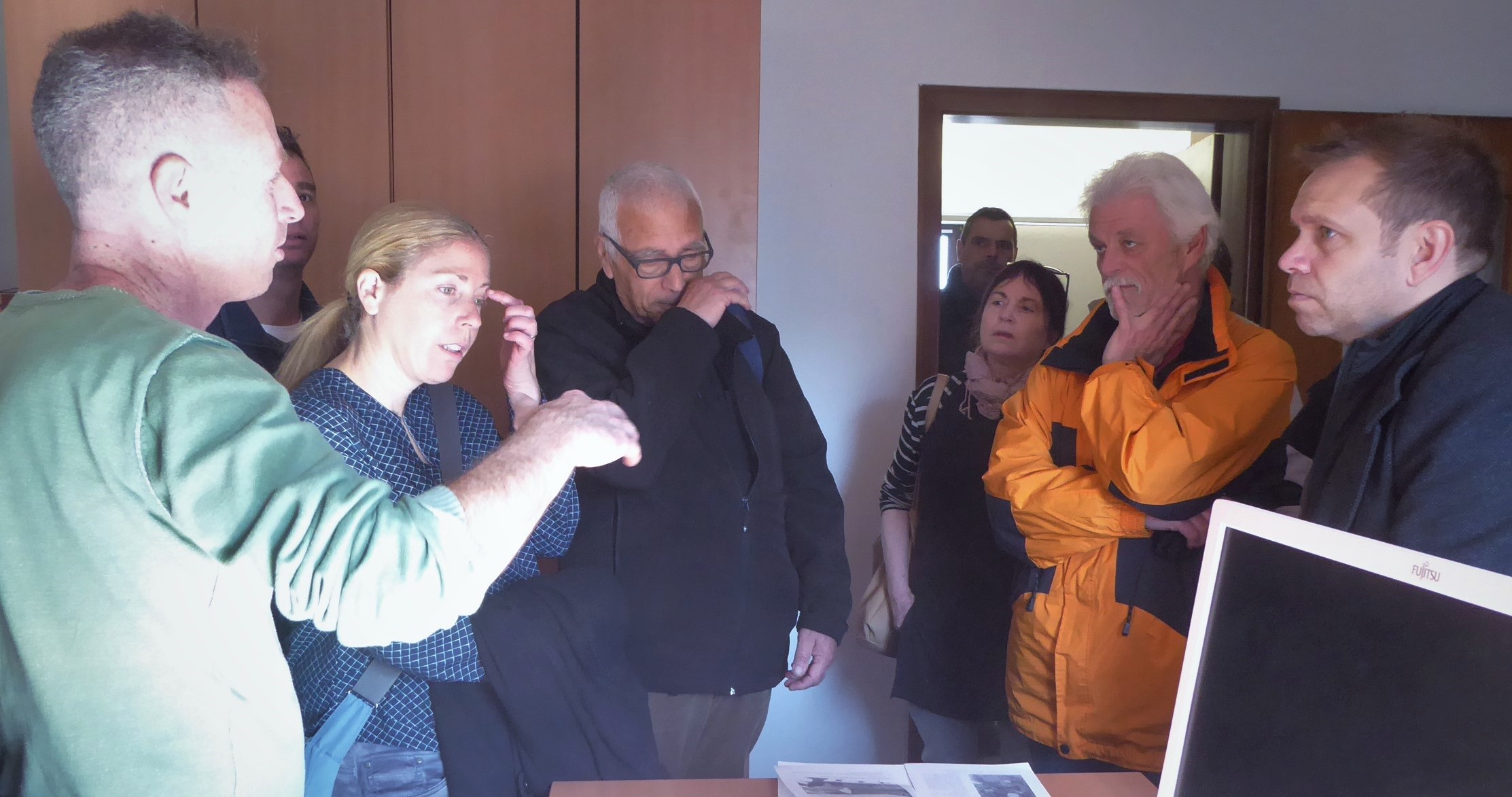 Nach der Besichtigung und den vielen Fragen setzte die Familie Meiri ihre Geschichtsreise zu den Stolpersteien vor der Hundsgasse, zum jüdischen Friedhof am Ende der Kölner Strasse und zur Gedenkplatte der Synagoge, die am Eingang zur Adler-Apotheke in der Graf-Salm-Strasse eingelassen ist, in Bedburg fort.Auf dem jüdischen Friedhof wurde das Grabmal des Urgroßonkels Hermann Franken und andere jüdische Grabsteine in Gedenken der Vorfahren besichtigt.