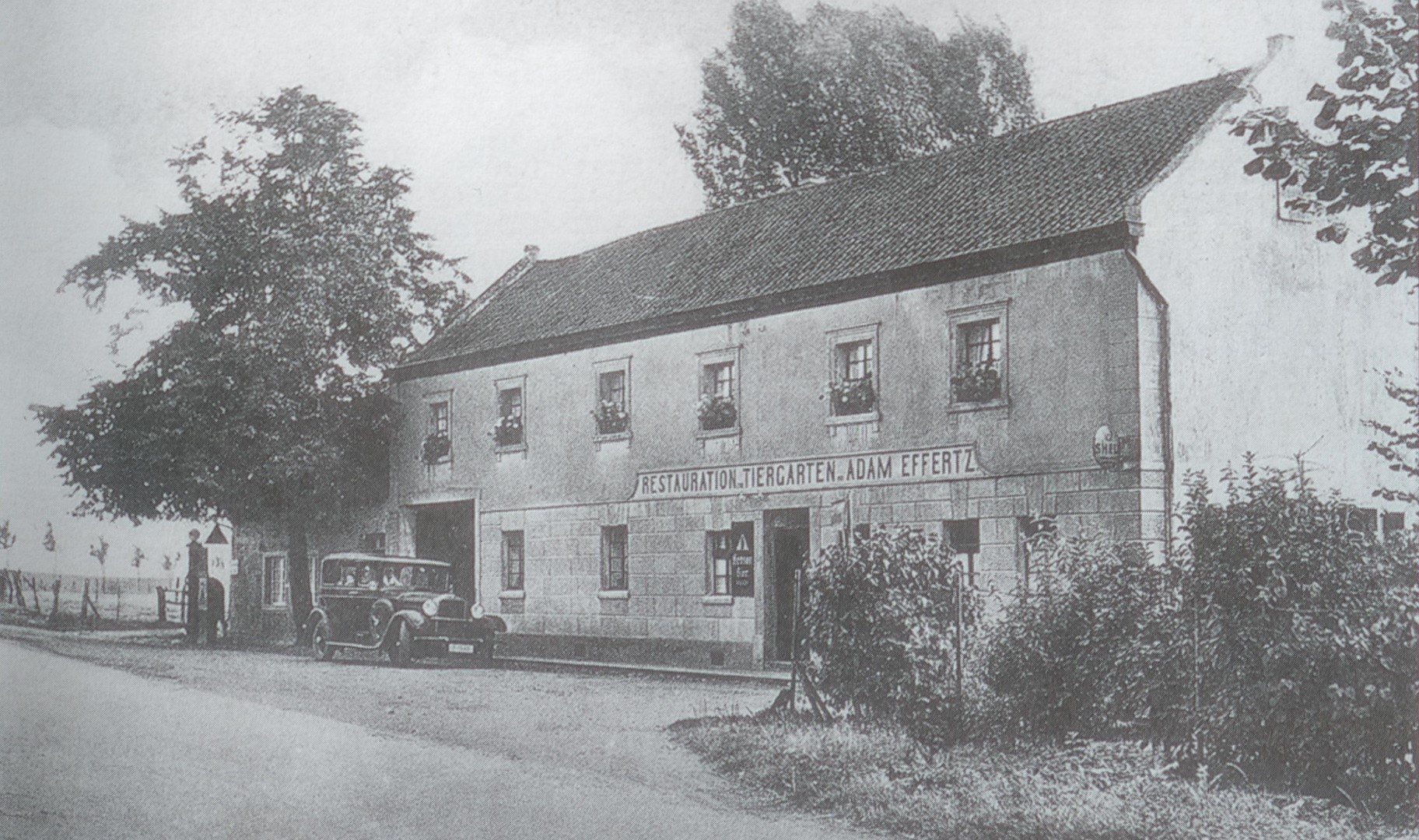 Seit 1890 im Besitz der Familie Effertz, die dort einen Gasthof, eine Gartenwirtschaft und eine Tankstelle betrieb. Das Haus lag an der Landstraße zwischen Bedburg-Kaster und Morken-Harff. 1976 fiel es als letztes Gebäude des Weilers Omagen dem Braunkohleabbau zum Opfer.